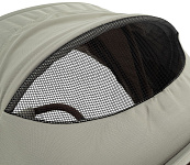 Глубокий капюшон с дополнительной секцией закроет ребёнка от солнца или дождя. Также присутствует вентиляционное окошко и большое смотровое окно в задней части коляски.