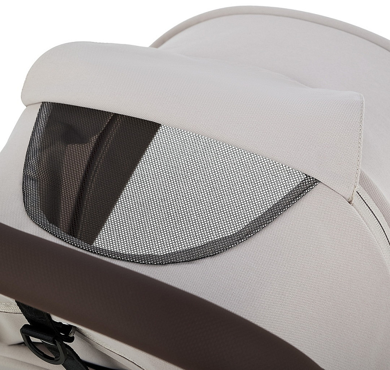 Вентиляционная окошко в капюшоне. Вставка из дышащей сетки на задней стенке обеспечивает вентиляцию и комфортные прогулки в жаркие дни. Вентиляционное окошко легко открывается с помощью двух боковых молний и фиксируется с использованием специального крепления.