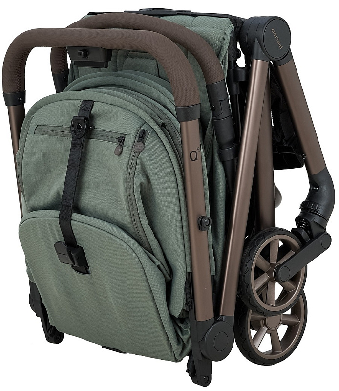 Ультра компактная. Благодаря своему компактному размеру, коляска Q5 удобно транспортируется и в сложенном виде занимает мало места. Складывается одной рукой, в вертикальном положении стоит без опоры, сохраняя чистоту текстиля и ручки. Складной механизм по типу «книжка». Для переноски коляски предусмотрен удобный плечевой ремень.