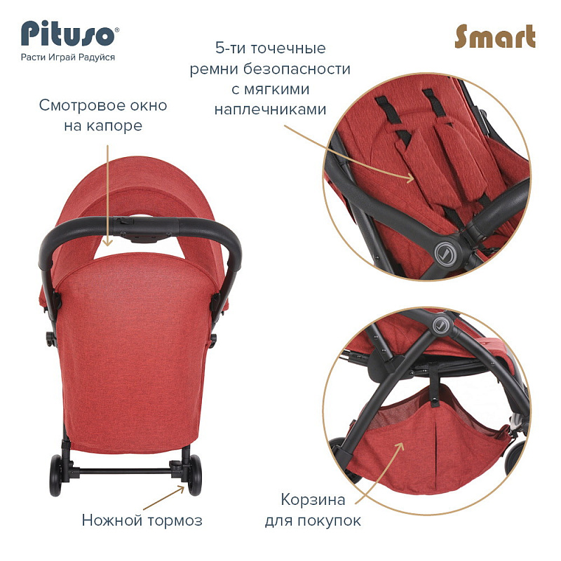 Детская прогулочная коляска Pituso Smart Berry ягодный лен