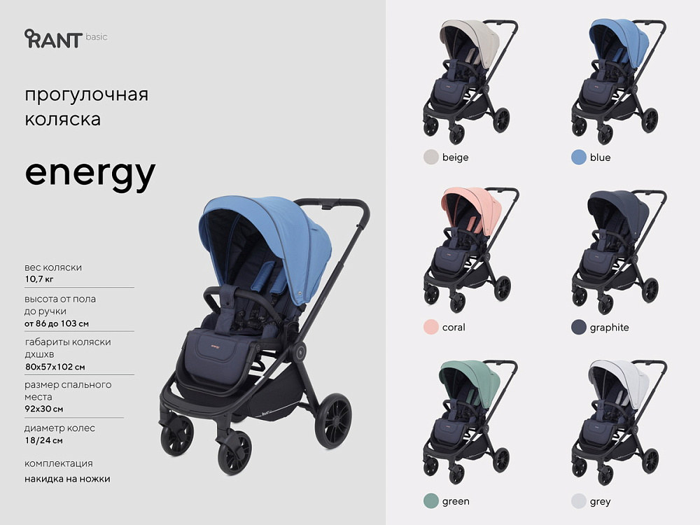 Детская прогулочная коляска Rant basic Energy Grey 2024