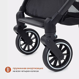 - пружинная амортизация на всех четырех колесах обеспечит коляске плавный ход