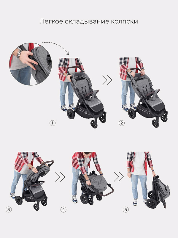 - сиденье малыша не будет пачкаться при транспортировке - коляска складывается чехлом внутрь