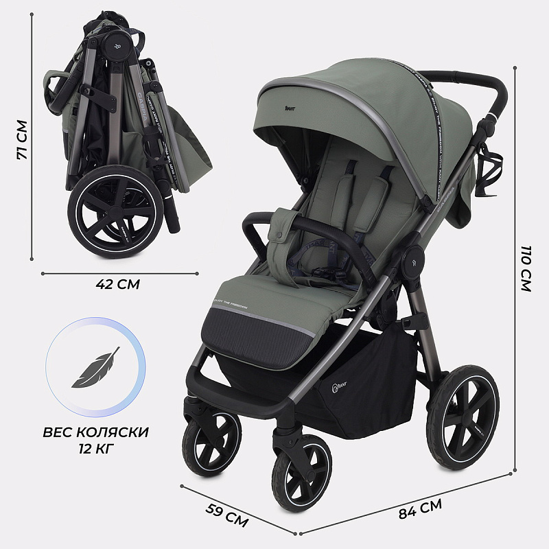 главная инновация модели - бескамерные резиновые колеса, которые не требуют поддува. Благодаря им коляска легко преодолеет сложный ландшафт: сугробы, грязь, песок, гравий…
