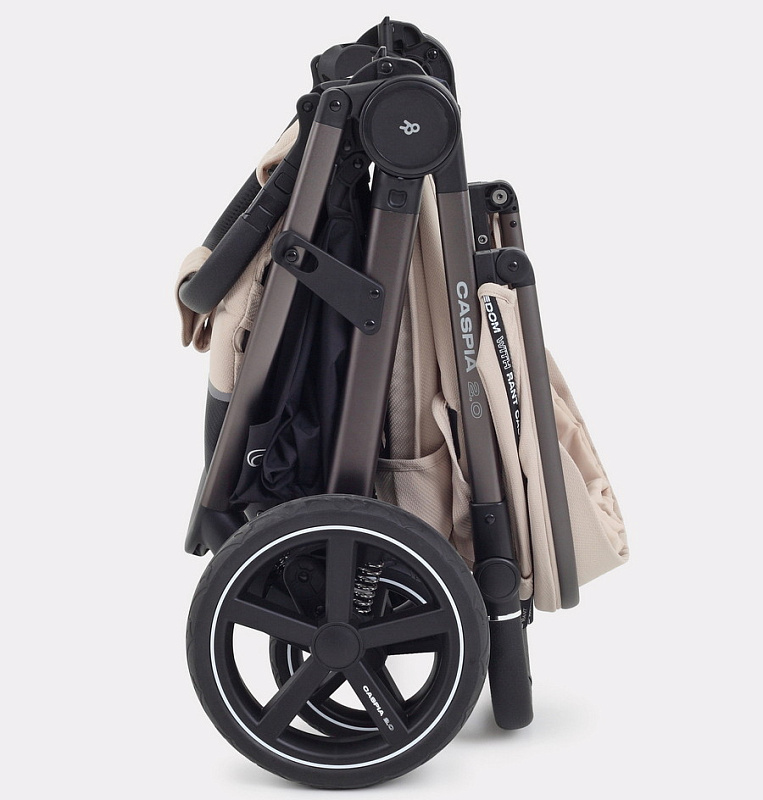 - сложенная коляска устойчиво стоит в вертикальном положении