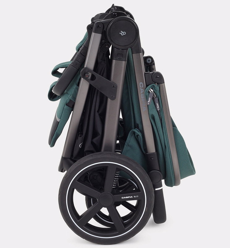 - сложенная коляска устойчиво стоит в вертикальном положении