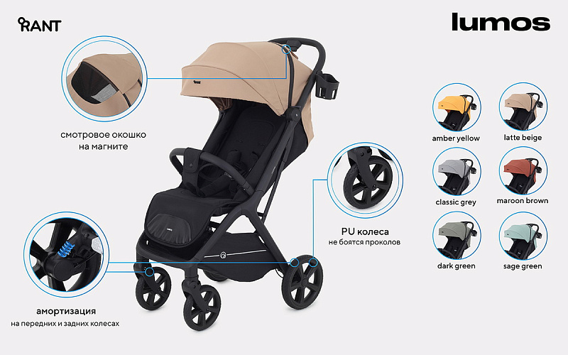 Детская прогулочная коляска RANT LUMOS создана специально для всесезонных прогулок. Модель покорит вас: абсолютной непродуваемостью в холодный период, системой самостоятельного складывания, пружинной амортизацией на всех колесах, компактным размером в сложенном виде.