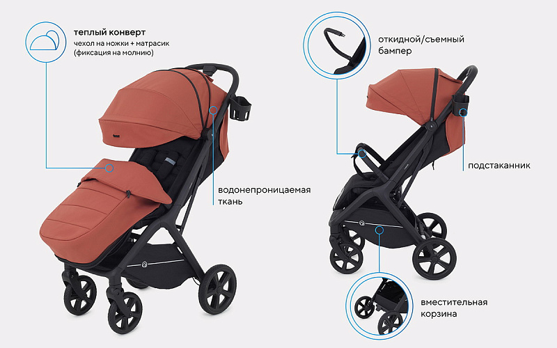 модель абсолютно непродуваема - накидка для ножек (по желанию) фиксируется на съемном матрасике по всему периметру с помощью молнии. Ребенку будет максимально тепло и уютно, как в коконе.