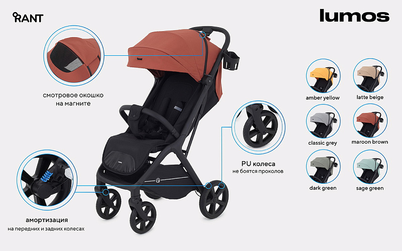 Детская прогулочная коляска RANT LUMOS создана специально для всесезонных прогулок. Модель покорит вас: абсолютной непродуваемостью в холодный период, системой самостоятельного складывания, пружинной амортизацией на всех колесах, компактным размером в сложенном виде.