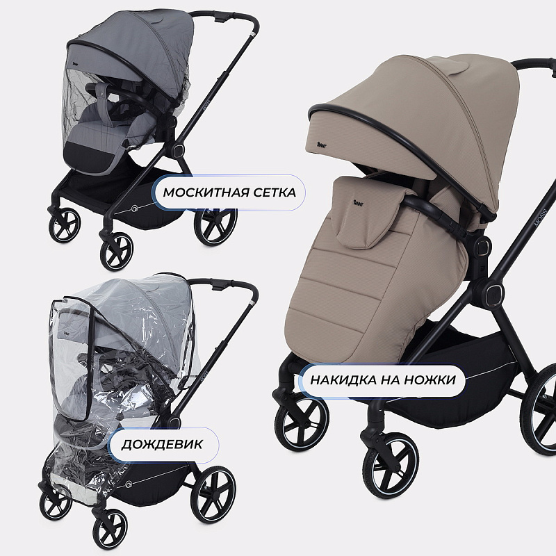 - москитная сетка и дождевик с окошком в комплектации подарят дополнительный комфорт при прогулках