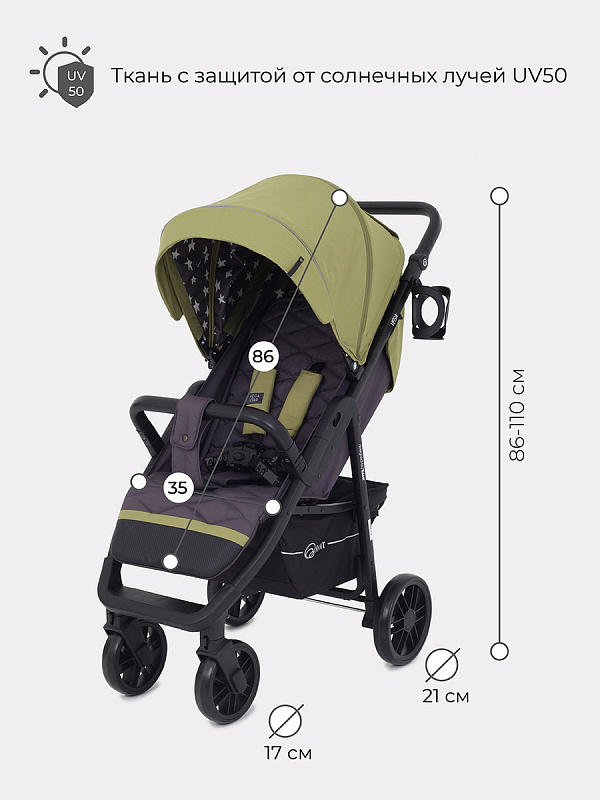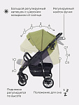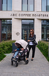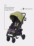 Прогулочная коляска небольшого веса, рама выполнена из алюминия. Новый уровень амортизации. Задние колёса с центральным тормозом. Большой капюшон с широким козырьком от солнца. Есть смотровое окошко и карман для мелочей. Модель дополнена подстаканником и корзиной для покупок.