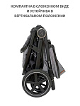 - В сложенном виде коляска сохраняет вертикальное положение и блокируется от случайного раскладывания.