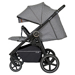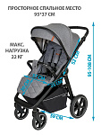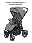 Коляска обладает превосходными характеристиками, в том числе мягкостью хода, которая достигается новыми, инновационными, не прокалываемыми колесами и независимой амортизацией для всех 4х колес. Передние поворотные колеса – с возможностью фиксации, для передвижения по бездорожью. Задние колеса увеличенного диаметра имеют регулировку жесткости, для различного типа покрытия дороги.