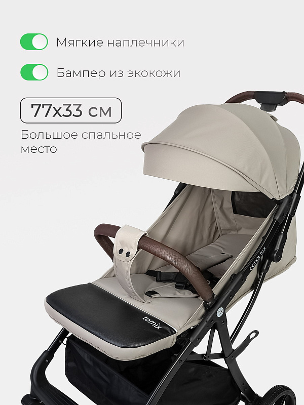 Съемный бампер и родительская ручка из экокожи практичны, удобны в использовании и придают коляске привлекательный внешний вид.