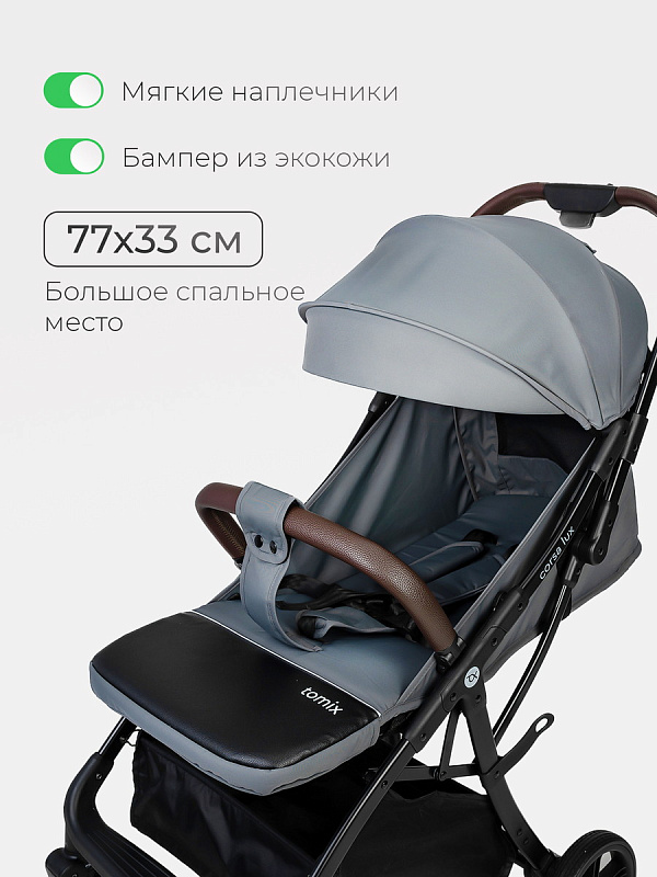 Детская прогулочная коляска Tomix Corsa LUX GreyНет оценокХарактеристики