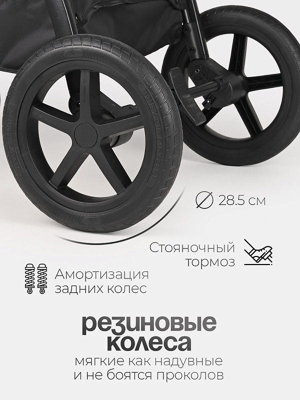 - колеса из износостойкого полиуретана диаметром 18 см (передние) и 24 см (задние);