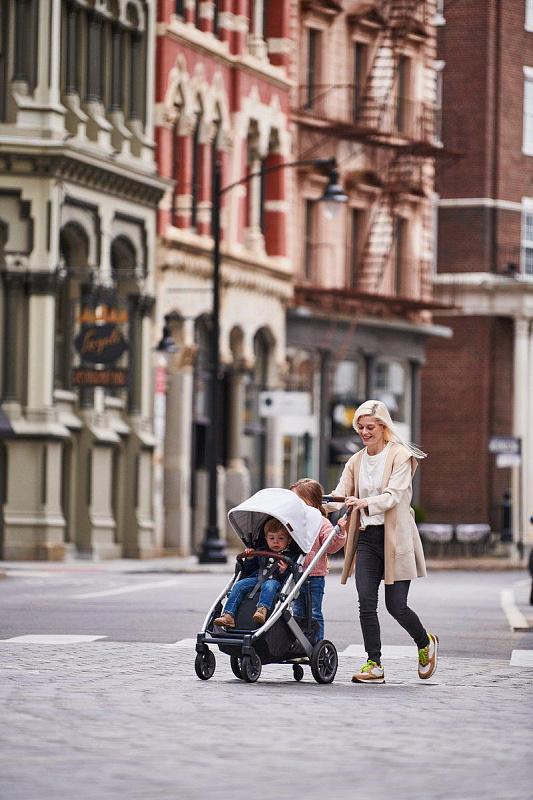 UPPAbaby CRUZ V2 — идеальная всесезонная прогулочная коляска, стильная, маневренная и функциональная. Гуляйте в городе и за его пределами, маневрируйте в многолюдных торговых центрах и на тропинках парков, нагружайте корзину всем, что может понадобиться на прогулке, и смело заходите в магазины за любым количеством покупок. Эта коляска может всё.