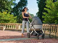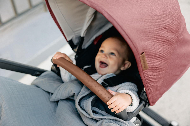 Регулируемая телескопическая ручка. Ручка регулируется по высоте для удобства использования родителями любого роста. Накладка на ручку выполнена из высококачественной натуральной кожи, поэтому обеспечивает надежный хват и легкий уход.