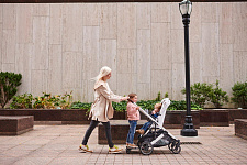 Вместительный реверсивный прогулочный блок. Прогулочный блок с растущим по высоте капором, увеличенной высотой спинки и глубиной подножки создан для растущих детей, которые активно интересуются окружающим миром. Реверсивный блок позволяет ребенку сидеть в коляске по направлению движения или лицом к родителям.