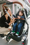 Многопозиционное сиденье, регулируемое одним движением. Сиденье регулируется одной рукой в нескольких положениях, что позволяет ребенку с комфортом спать, просто отдыхать или активно интересоваться окружающими миром.