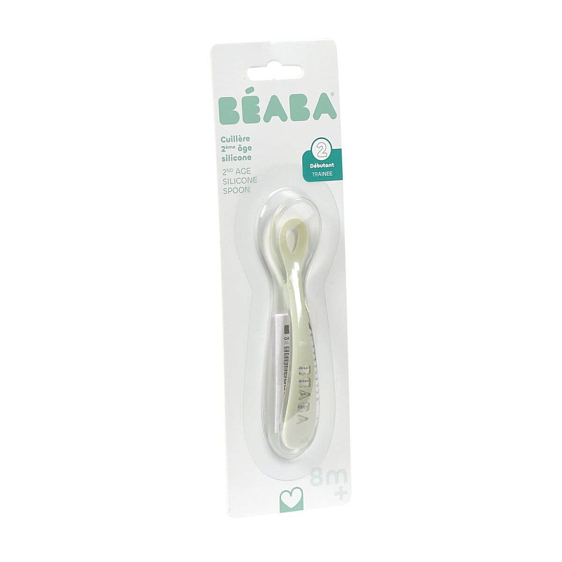 Детская силиконовая ложка Beaba для первого прикорма 8м+, в блистерной упаковке 913627 MIST GREEN