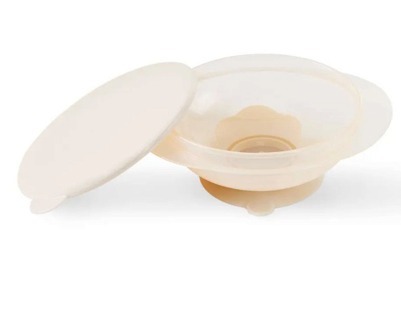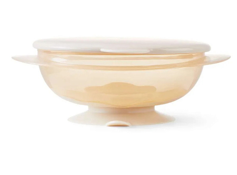 Детская тарелка Happy Baby на присоске с крышкой milky