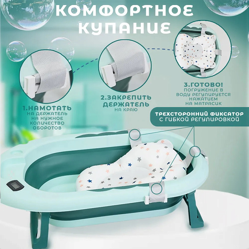 Ищете удобную и безопасную ванночку для купания вашего малыша? Представляем вам складную ванночку для новорожденных с встроенным термометром – идеальный выбор для заботливых родителей! Эта уникальная ванночка обладает рядом преимуществ, которые сделают процесс купания вашего ребенка комфортным и безопасным. Встроенный термометр позволяет контролировать температуру воды, чтобы она была идеально подходящей для вашего малыша. Теперь вы можете быть уверены, что вода не будет слишком горячей или холодной, и ваш ребенок будет наслаждаться купанием. Особенностью этой ванночки является наличие подушки, которая обеспечит максимальный комфорт вашему малышу. Мягкая и удобная подушка поддерживает правильное положение головы и шейки позвоночника, что особенно важно для новорожденных. Ваш ребенок будет чувствовать себя комфортно и безопасно во время купания, а вы сможете наслаждаться процессом без лишних переживаний. Складная конструкция ванночки делает ее идеальным вариантом для путешествий или поездок к родственникам. Вы можете легко сложить ее и положить в сумку или чемодан, не занимая много места. Это особенно удобно, когда вы находитесь вдали от дома и хотите обеспечить комфортное купание вашего малыша. Ванночка оснащена удобной лейкой, которая позволяет легко смывать мыло и шампунь с кожи ребенка. Вы сможете быстро и эффективно очистить вашего малыша, не вызывая дискомфорта или раздражения. Лейка также поможет вам сэкономить воду, что является важным аспектом в наше экологически осознанное время. Ванночка для новорожденных с термометром выполнена из высококачественного и безопасного материала, который не вызывает аллергических реакций или раздражения кожи. Вы можете быть уверены, что ваш ребенок находится в безопасности и комфорте во время купания. Мягкие края ванночки предотвращают возможные травмы или ссадины, обеспечивая дополнительную защиту для вашего малыша. Приобретая складную ванночку для новорожденных с термометром, вы получаете не только удобный и безопасный продукт, но и возможность создать незабываемые моменты во время купания вашего малыша. Позвольте ему насладиться приятной и расслабляющей процедурой, которая так важна для его здоровья и развития. Не упустите возможность сделать купание вашего малыша еще более приятным и комфортным. Закажите складную ванночку для новорожденных с термометром прямо сейчас и наслаждайтесь каждым моментом, проведенным вместе со своим малышом. Ваш ребенок заслуживает только самое лучшее!