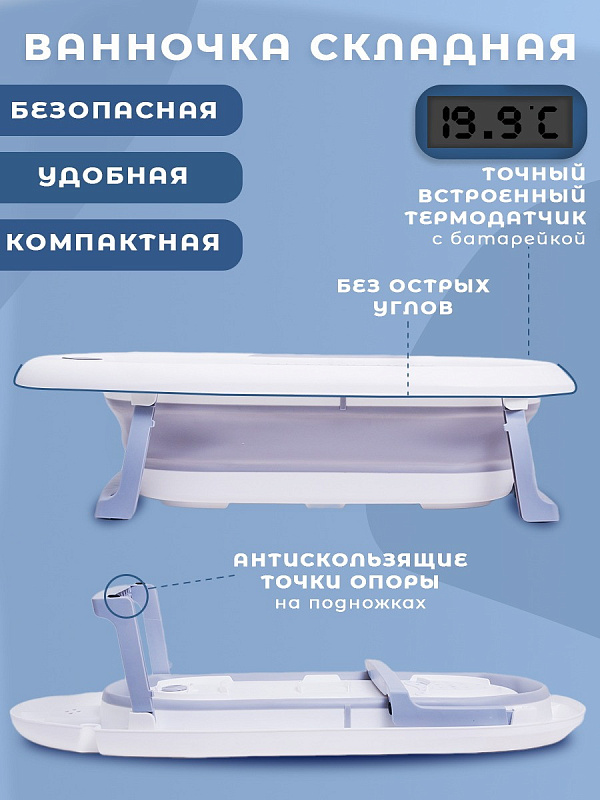 Ищете удобную и безопасную ванночку для купания вашего малыша? Представляем вам складную ванночку для новорожденных с встроенным термометром – идеальный выбор для заботливых родителей! Эта уникальная ванночка обладает рядом преимуществ, которые сделают процесс купания вашего ребенка комфортным и безопасным. Встроенный термометр позволяет контролировать температуру воды, чтобы она была идеально подходящей для вашего малыша. Теперь вы можете быть уверены, что вода не будет слишком горячей или холодной, и ваш ребенок будет наслаждаться купанием. Особенностью этой ванночки является наличие подушки, которая обеспечит максимальный комфорт вашему малышу. Мягкая и удобная подушка поддерживает правильное положение головы и шейки позвоночника, что особенно важно для новорожденных. Ваш ребенок будет чувствовать себя комфортно и безопасно во время купания, а вы сможете наслаждаться процессом без лишних переживаний. Складная конструкция ванночки делает ее идеальным вариантом для путешествий или поездок к родственникам. Вы можете легко сложить ее и положить в сумку или чемодан, не занимая много места. Это особенно удобно, когда вы находитесь вдали от дома и хотите обеспечить комфортное купание вашего малыша. Ванночка оснащена удобной лейкой, которая позволяет легко смывать мыло и шампунь с кожи ребенка. Вы сможете быстро и эффективно очистить вашего малыша, не вызывая дискомфорта или раздражения. Лейка также поможет вам сэкономить воду, что является важным аспектом в наше экологически осознанное время. Ванночка для новорожденных с термометром выполнена из высококачественного и безопасного материала, который не вызывает аллергических реакций или раздражения кожи. Вы можете быть уверены, что ваш ребенок находится в безопасности и комфорте во время купания. Мягкие края ванночки предотвращают возможные травмы или ссадины, обеспечивая дополнительную защиту для вашего малыша. Приобретая складную ванночку для новорожденных с термометром, вы получаете не только удобный и безопасный продукт, но и возможность создать незабываемые моменты во время купания вашего малыша. Позвольте ему насладиться приятной и расслабляющей процедурой, которая так важна для его здоровья и развития. Не упустите возможность сделать купание вашего малыша еще более приятным и комфортным. Закажите складную ванночку для новорожденных с термометром прямо сейчас и наслаждайтесь каждым моментом, проведенным вместе со своим малышом. Ваш ребенок заслуживает только самое лучшее!