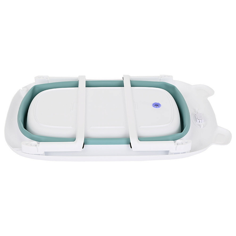 В разложенном виде ванночка детская для купания вместительная, ее объем рассчитан на вес до 30 кг. Детская ванночка для купания имеет слив с герметичной термочувствительной пробкой, которая укажет на то, что вода слишком горячая, изменив цвет, а также удобное крепление для душевой лейки.