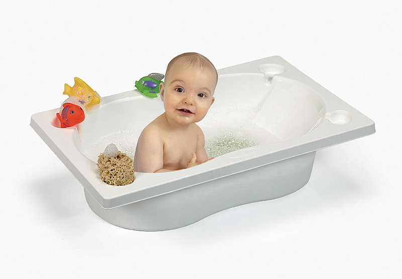 BabyLand by RAL-GOM Athena - анатомическая и удобная детская ванночка, оснащенная небольшой сливной трубкой и пробкой. Функциональное и безопасное сиденье, расположенное на дне ванны, не даёт ребенку поскользнуться.