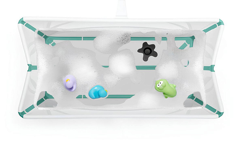 В комплекте: Ванночка Stokke Flexi Bath - 1 шт, термочувствительная пробка - 1 шт, горка для купания – 1 шт.