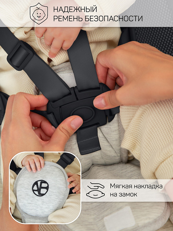 Комфортные ремни безопасности с гибкой регулировкой, надежно удерживают ребенка в качелях, обеспечивая ему повышенную безопасность. С помощью пульта ДУ, который идет в комплекте, вы легко сможете управлять функциями электрокачели на расстоянии, продолжая заниматься домашними делами. 5 скоростей укачивания позволяет настроить интенсивность качания в соответствии с вашими предпочтениями.