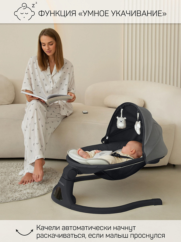 Электрокачели для новорожденных оснащены очаровательными мягкими игрушками с погремушками, это стимулирует развитие мелкой моторики рук и обеспечивает дополнительное развлечение для малыша. Так же, модель оснащена не только возможностью питания от сети при помощи встроенного кабеля, но и от элементов питания ААА (батареек/аккумуляторов, в комплект не входят). Вы можете использовать ее не только дома, но и в поездках или на даче.