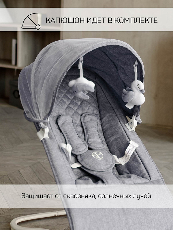 Электрокачели для новорожденных с пультом оснащены очаровательными мягкими игрушками, которые закреплены на капюшоне в непосредственной близости от ребенка. Это стимулирует развитие мелкой моторики рук и обеспечивает дополнительное развлечение для малыша.