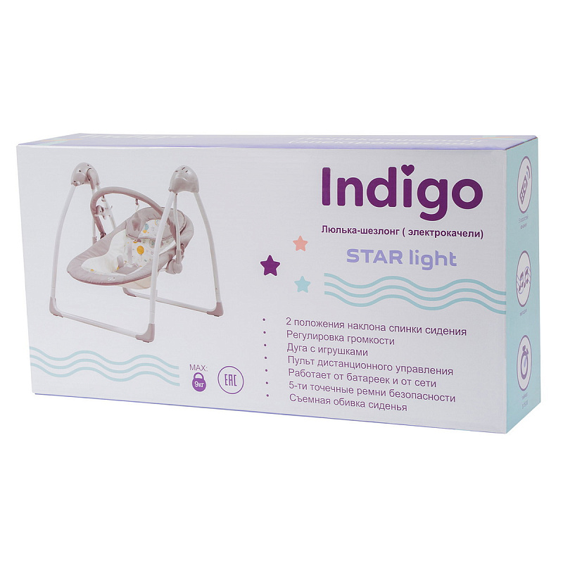 Электронные качели STAR Light — надёжное и практичное решение для вашего ассортимента товаров для малышей. Модель предназначена для детей весом до 9 кг. Большим преимуществом качелей является их функциональность: 5 скоростей качания, 15 встроенных мелодий, 5 звуков природы, таймер укачивания, возможность регулировки громкости и фиксации качания. STAR Light работает как от батареек, так и от USB, что делает их универсальными как для дома, так и для путешествий.