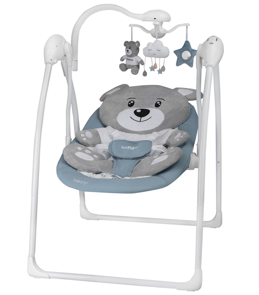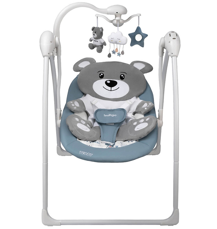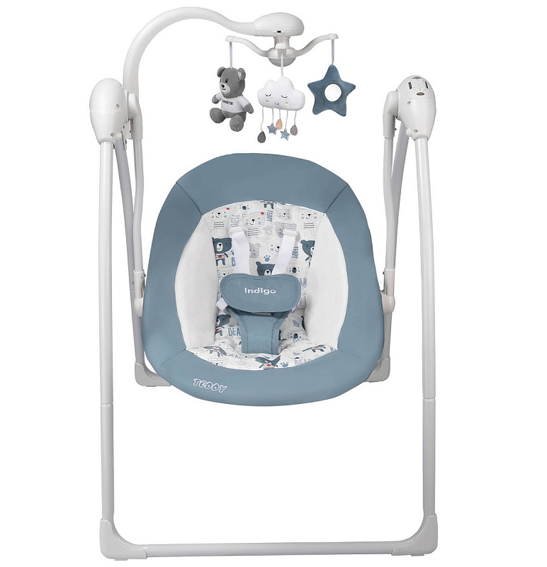Электрокачели давно стали незаменимой вещью в доме, где есть новорожденный ребенок. Такая “электро няня” и укачает, и успокоит, и отвлечет, а мама в это время может заниматься домашними делами. Электронные детские качели Indigo Teddy оснащены всем необходимым, чтобы значительно облегчить быт новоиспеченных родителей. Мы предусмотрели все для удобства эксплуатации и безопасности малыша первого года жизни. Просторная, комфортная люлька-шезлонг, с приятной к телу ребенка тканью и съемным чехол, очень мягкий и удобный вкладыш в форме мишки. Съемный музыкальный мобиль с приятной мелодией и игрушками, пульт для дистанционного управления. И даже москитная сетка для сладких снов на улице. А безопасность младенцев с рождения обеспечивают надежные 5-точечные ремни. Прочная, надежная, устойчивая конструкция, в собранном виде, достаточно мобильна и компактна, она не займет много места и выдержит вес ребенка до 9 кг. Подвесная люлька имеет 5 скоростей качания и регулируется в двух положениях наклона спинки: полусидя и лежа. Регулировка осуществляется нажатием одновременно двух кнопок по бокам. Вращающийся мобиль электро-качели с подсветкой, включает в себя 12 мелодий, 5 звуков природы и “белый” шум. Работает от 2 мизинчиковых батареек (ААА). Таймер можно установить на 15, 30 и 60 минут. Музыку можно отключить совсем, оставив только функцию укачивания и наоборот, отключить функцию укачивания и оставить только музыку. С помощью пульта Вы можете регулировать громкость, скорость колебаний, переключать мелодию, устанавливать таймер и пользоваться другими функциями на расстоянии. Качели для детей Teddy можно использовать не только в доме или квартире, но также на даче, во дворе, в саду! Блок управления работает от сети и от 4 пальчиковых батареек (AA). Блок питания в комплекте. Батарейки в комплект не входят. Многофункциональные электронные качели от Индиго отличаются практичностью и надежностью, большой выбор цветов позволяет подобрать подходящий как для мальчика, так и для девочки.