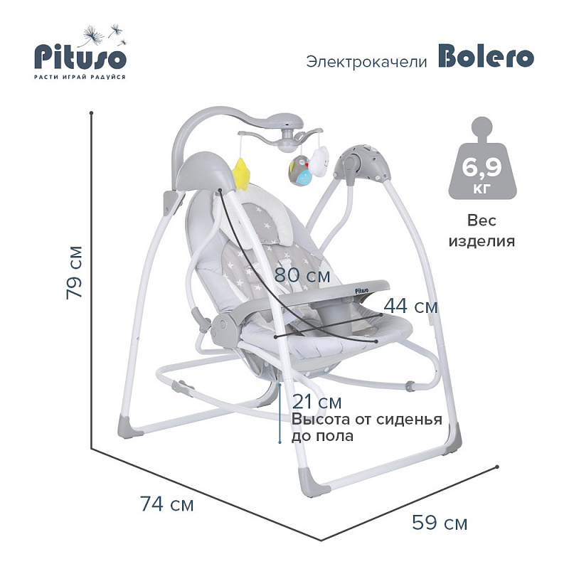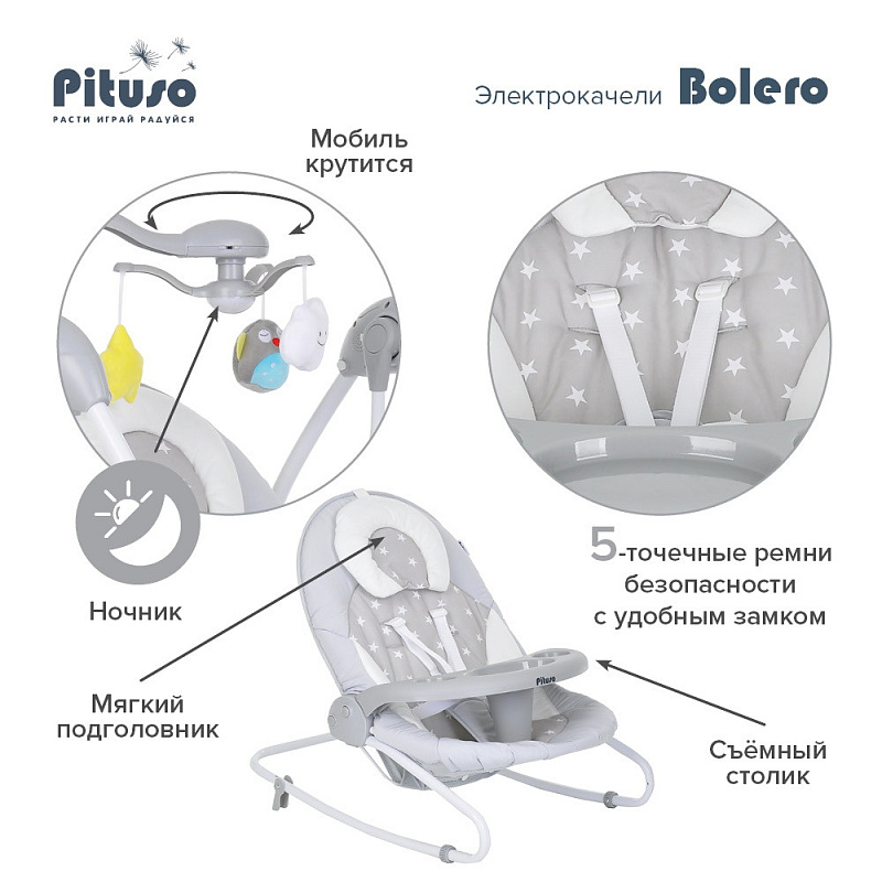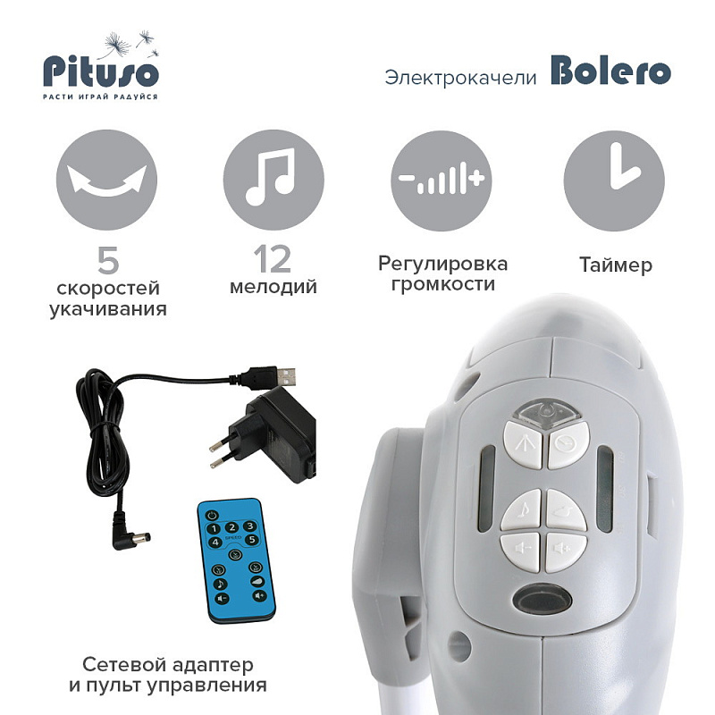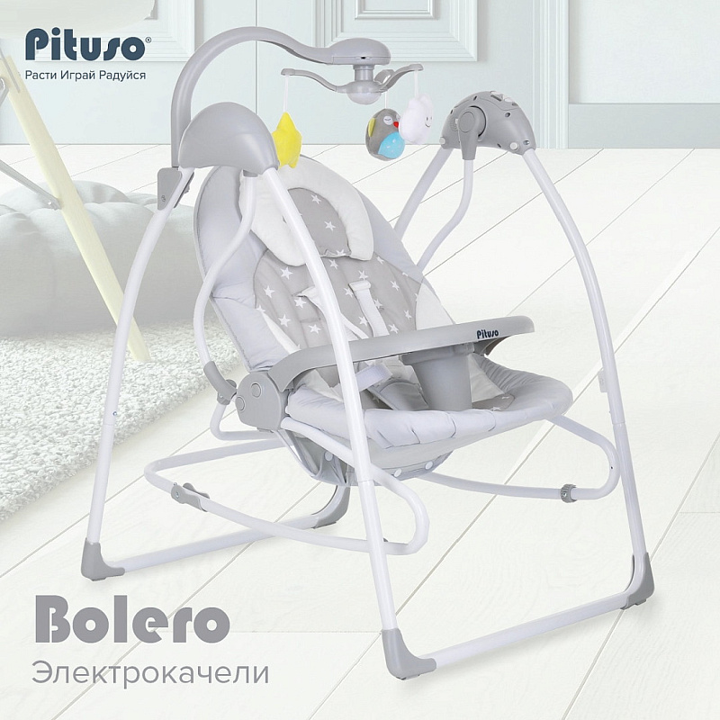 Детские электрокачели Pituso Bolero 2 в 1 Grey/Серый