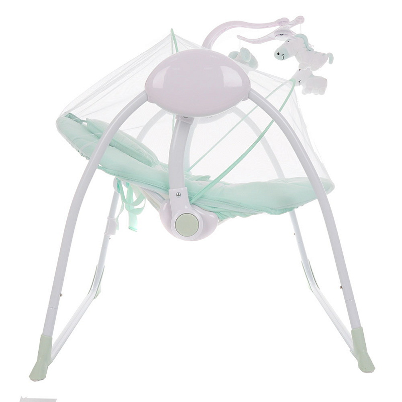 Электрокачели отличаются лёгкостью, компактностью и многофункциональностью. Ребёнок легко засыпает благодаря бесшумному качанию. А когда малыш не спит, то его развлечёт модуль с игрушками и музыкальные эффекты. Скорость раскачивания регулируется. Антимоскитная сетка в комплекте позволяет использовать модель на улице.