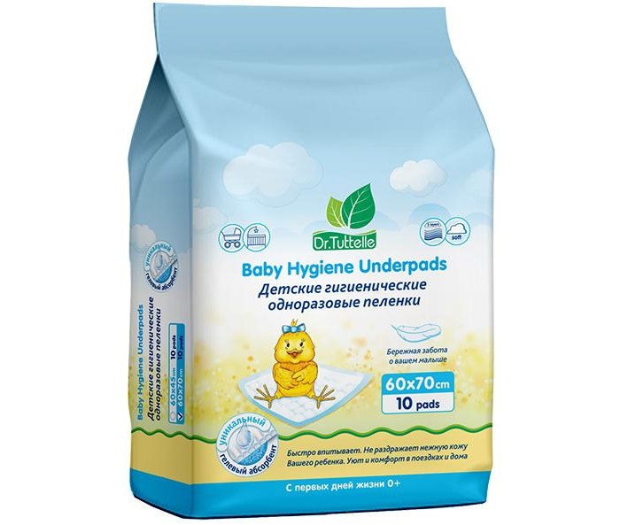 Детские гигиенические одноразовые пеленки Dr.Tuttelle размеры 60х70 см