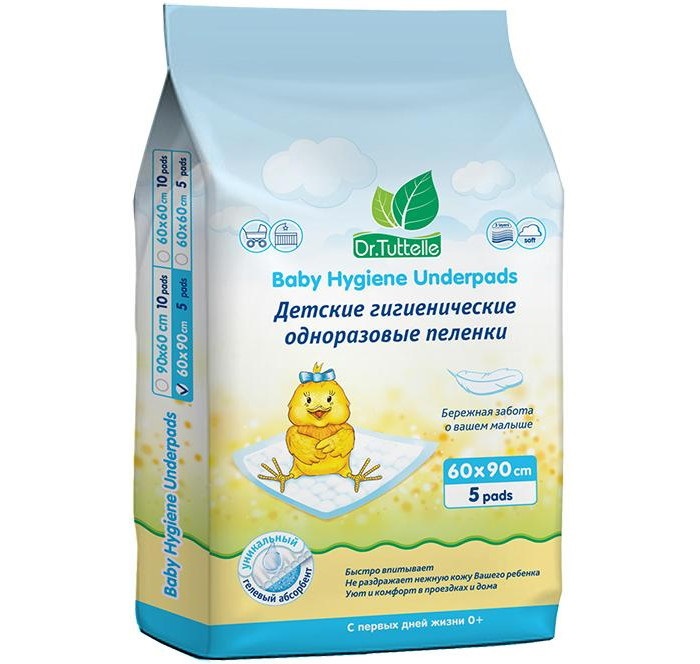 Детские гигиенические одноразовые пеленки Dr.Tuttelle размеры 90х60 см