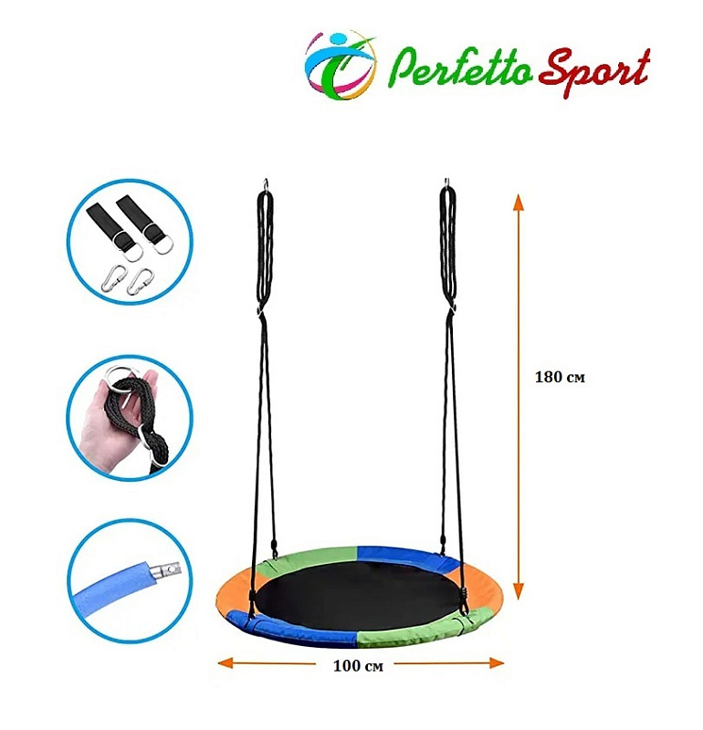 Качели Гнездо Perfetto Sport BS-05 Полотно 100 см имеют круглую форму, похожую на гнездо, что позволяет кататься одновременно двум или более малышам.