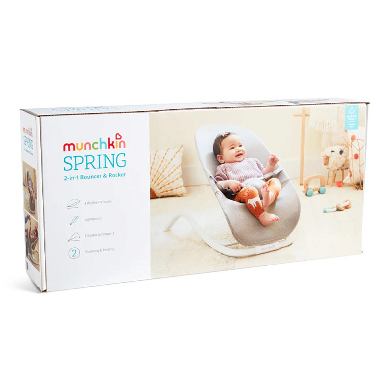 Детские качели шезлонг Munchkin Spring 2 in 1 Bouncer & Rocker серый