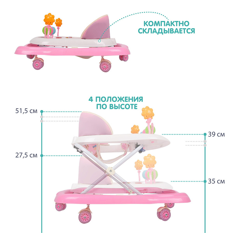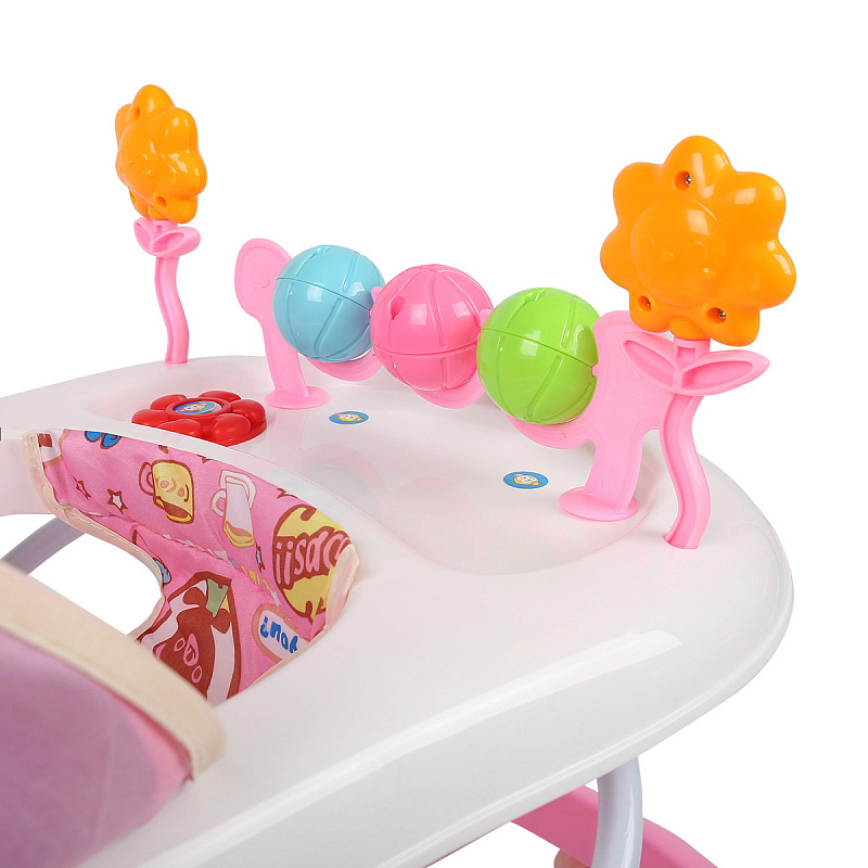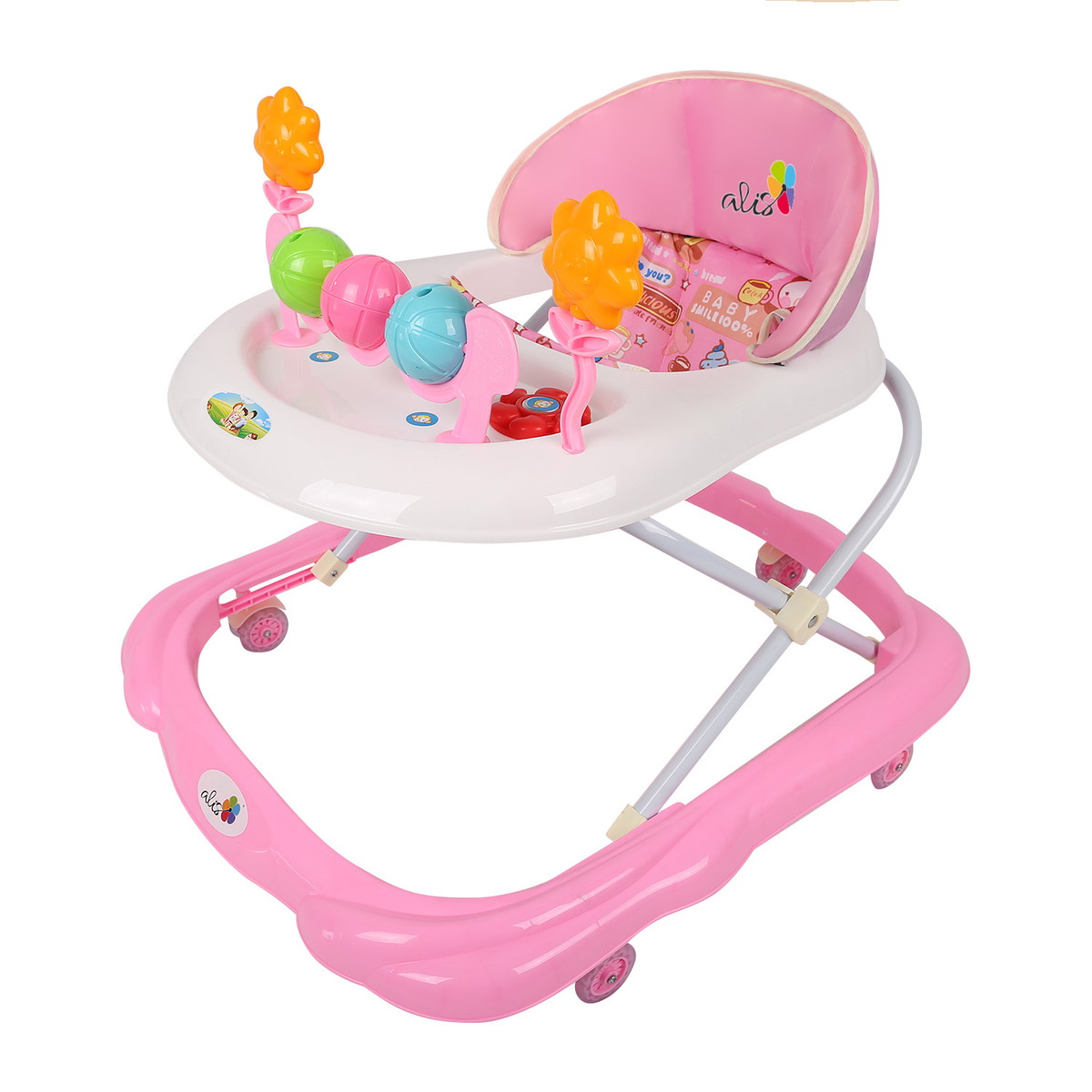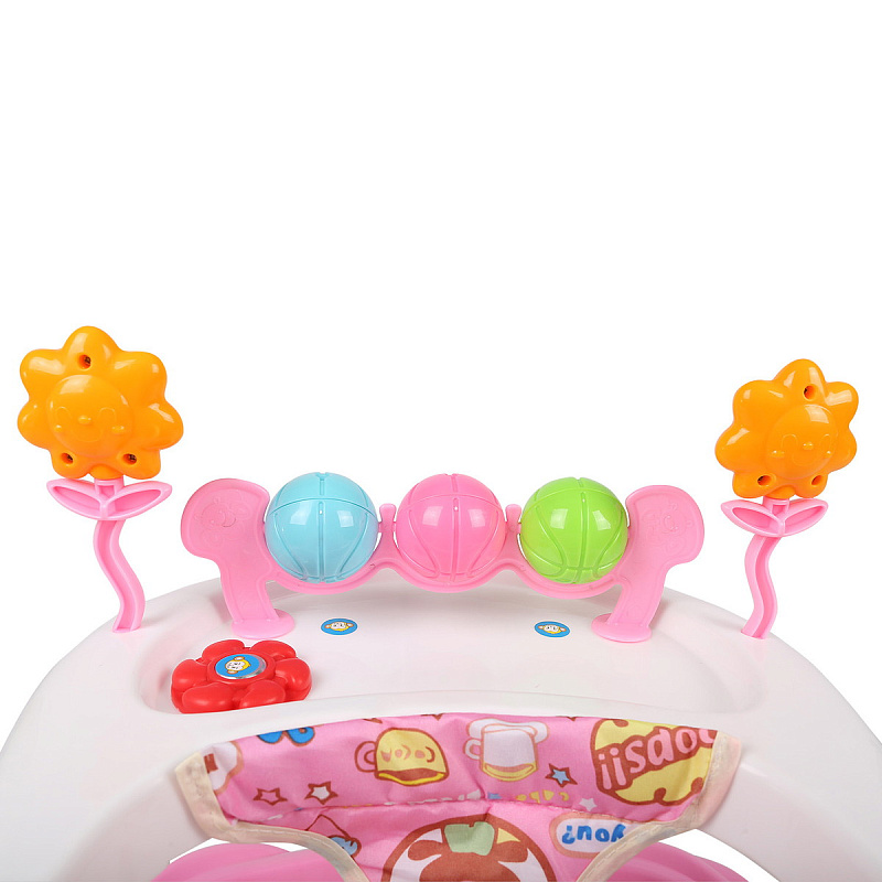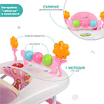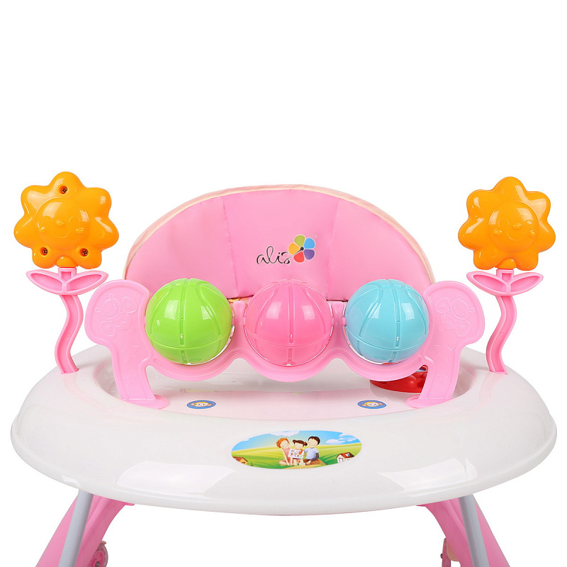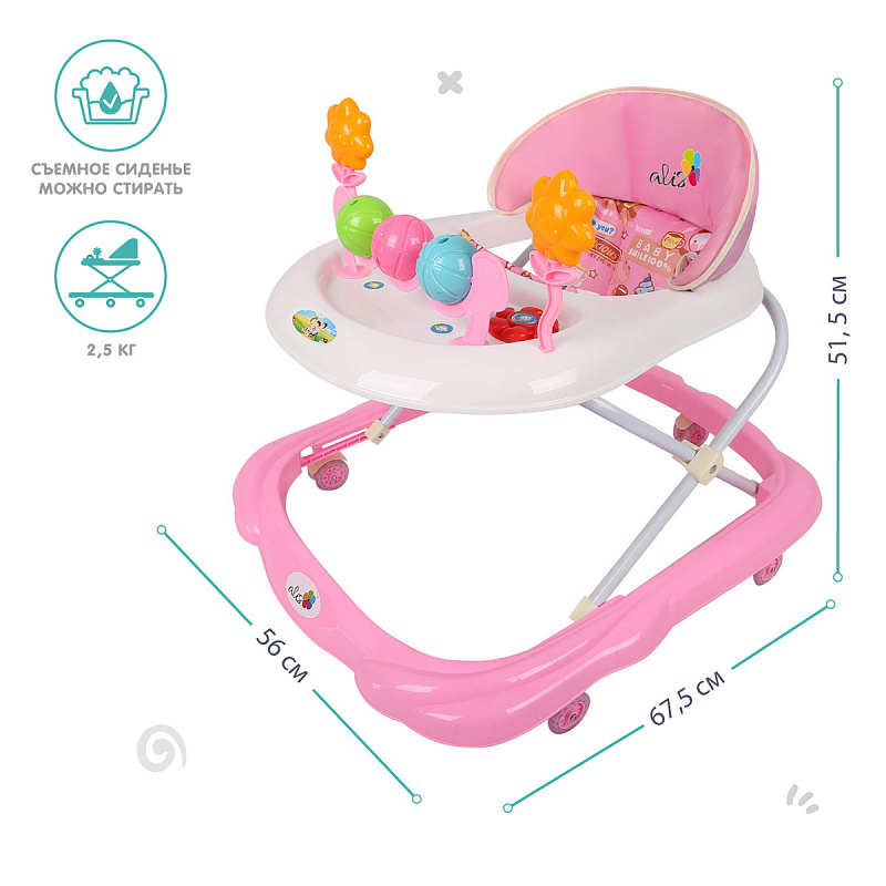 Ходунки Alis Game С сделаны из качественного пластика. Основа надежная, 6 колес с силиконовым покрытием. Регулировка по высоте в трех позициях. Ходунки дополнены несъемной игровой панелью с музыкальными и звуковыми эффектами. Панель включается с помощью двух батареек АА (покупаются дополнительно). Сиденье комфортное и вместительное, выполнено из качественной, не вызывающей аллергии ткани. Чехол снимается и стирается.