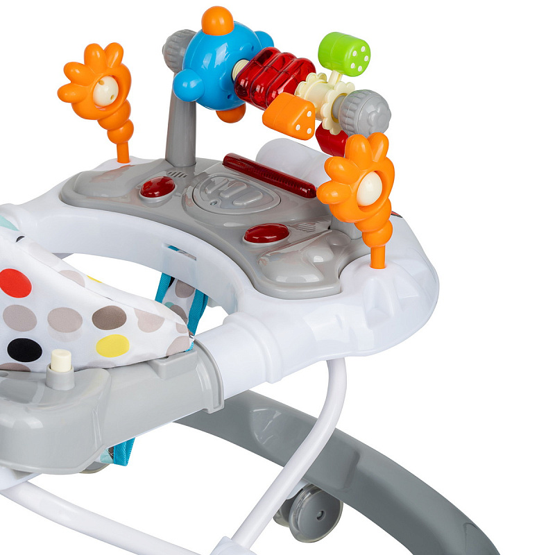 - Игровая панель наделена различными элементами, способствующими в развитии моторики рук, а в случае необходимости, ее можно снять.