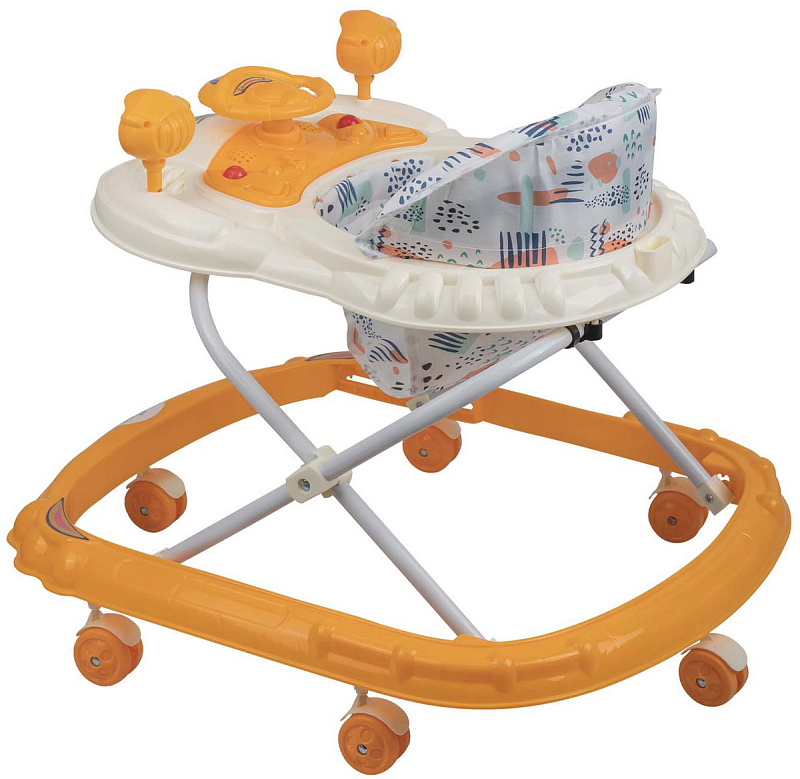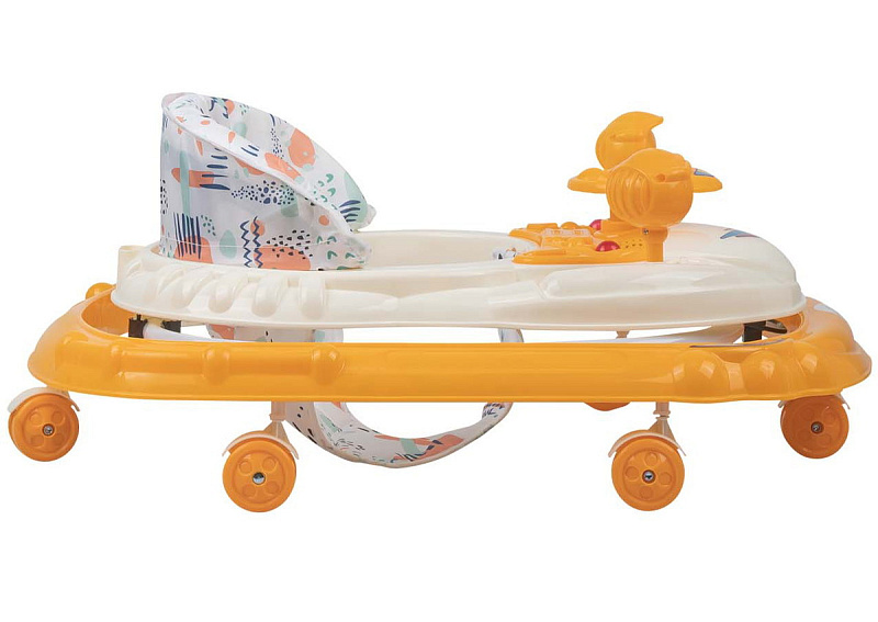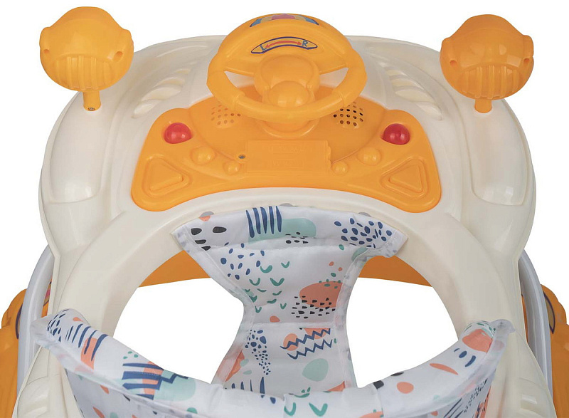 Модель оснащена 6 колесами, которые обеспечивают устойчивость и легкость передвижения малыша по дому. В зависимости от роста ребенка, ходунки можно отрегулировать по высоте в любое из 4-х возможных положений. Это позволит малышу при ходьбе ставить ножки на всю стопу. Встроенная игровая панель со звуковыми эффектами добавит интерактивности и увлекательности в процесс использования ходунков. Ребенок будет наслаждаться игрой, развивая мелкую моторику и слух. Чехол легко очистить, что значительно упрощает уход за ходунками. Модель представлена в трех насыщенных цветах: бежевый, оранжевый и синий.