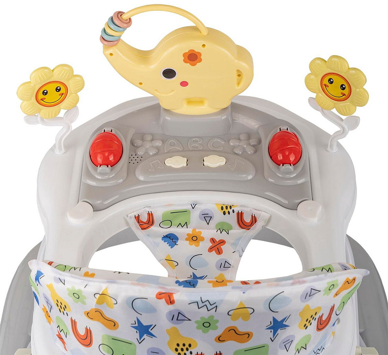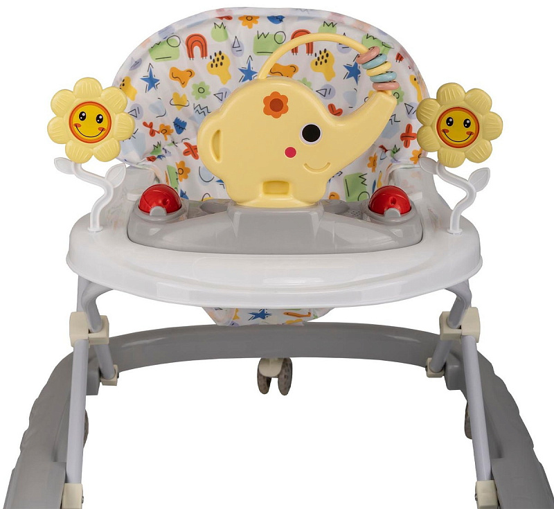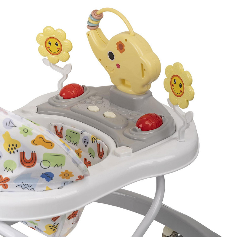 Модель Indigo JUMBO оснащена поворотными пластиковыми колесами, обеспечивающими легкость передвижения и маневренность. Ходунки регулируются по высоте в четырех положениях, позволяя адаптировать их под рост ребенка. Яркая съемная игровая панель с 10 веселыми мелодиями (питание от двух батареек АА, не входят в комплект) и тактильные элементы способствуют развитию моторики и слуха малыша. Чехол ходунков легко снимается и моется, обеспечивая гигиеничность использования. Подходят для малышей от 7 до 15 месяцев весом до 15 кг. Рекомендуется использовать ходунки не более 20 минут подряд.