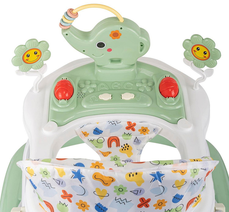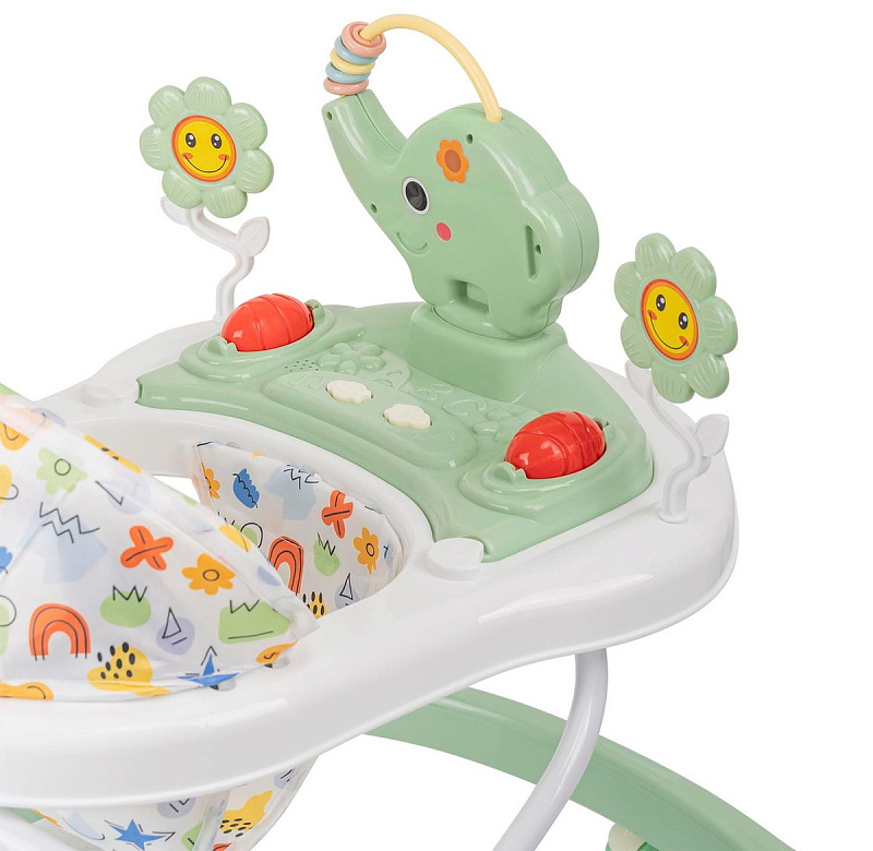 Модель Indigo JUMBO оснащена поворотными пластиковыми колесами, обеспечивающими легкость передвижения и маневренность. Ходунки регулируются по высоте в четырех положениях, позволяя адаптировать их под рост ребенка. Яркая съемная игровая панель с 10 веселыми мелодиями (питание от двух батареек АА, не входят в комплект) и тактильные элементы способствуют развитию моторики и слуха малыша. Чехол ходунков легко снимается и моется, обеспечивая гигиеничность использования. Подходят для малышей от 7 до 15 месяцев весом до 15 кг. Рекомендуется использовать ходунки не более 20 минут подряд.