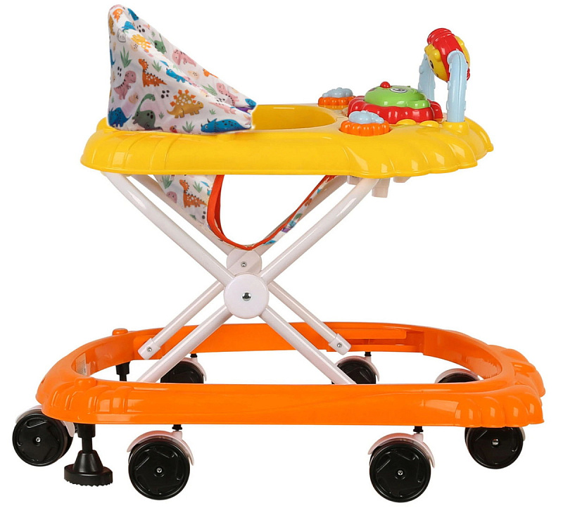 Яркая модель понравится каждому малышу! Съемная панель оснащена увлекательными игрушками с музыкальным сопровождением. Сидение регулируется в трех положениях по мере роста ребенка. Восемь колес расположенных по периметру базы обеспечивают прочность и маневренность конструкции, при необходимости их можно поставить на тормоз. Легкую и компактную модель удобно хранить в сложенном виде - не занимает много места.