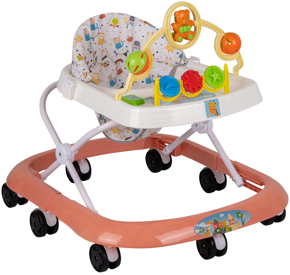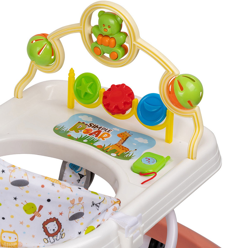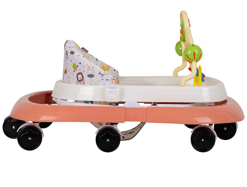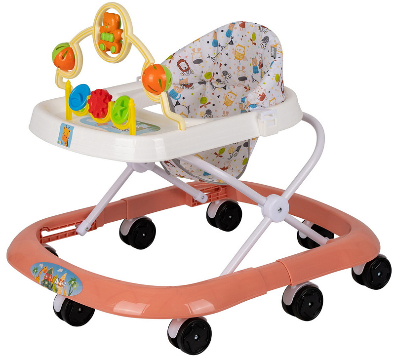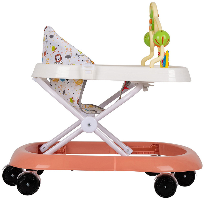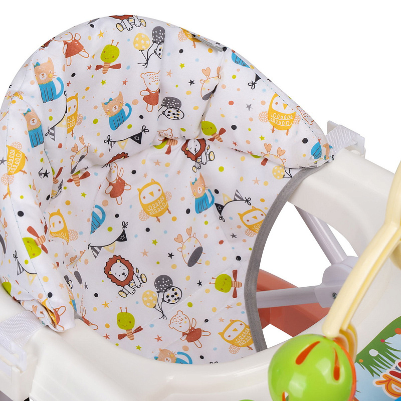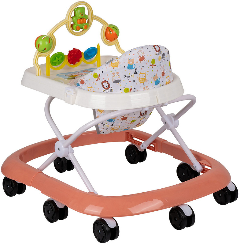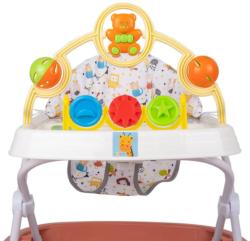 Ходунки в оригинальном ярком дизайне с игровой панелью дополненной приятной мелодией. Погремушки выполнены в оригинальной форме, которые помогут в развитии мелкой моторики малыша. Сидение регулируется в четырех положениях, которые можно менять по мере роста ребенка. Восемь колес расположенных по периметру базы обеспечивают прочность и маневренность конструкции. Ходунки компактного размера и легко складываются, поэтому не занимают много места при хранении.