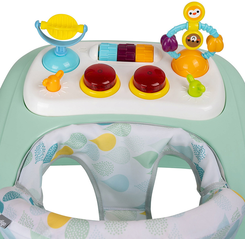 Музыкальная игровая панель со световыми эффектами и 12 мелодиями превращает ходунки в полноценную развивающую зону. Большой набор интерактивных элементов стимулирует интерес ребенка и способствует развитию моторики. Панель съемная, что упрощает уход и расширяет варианты использования модели.
